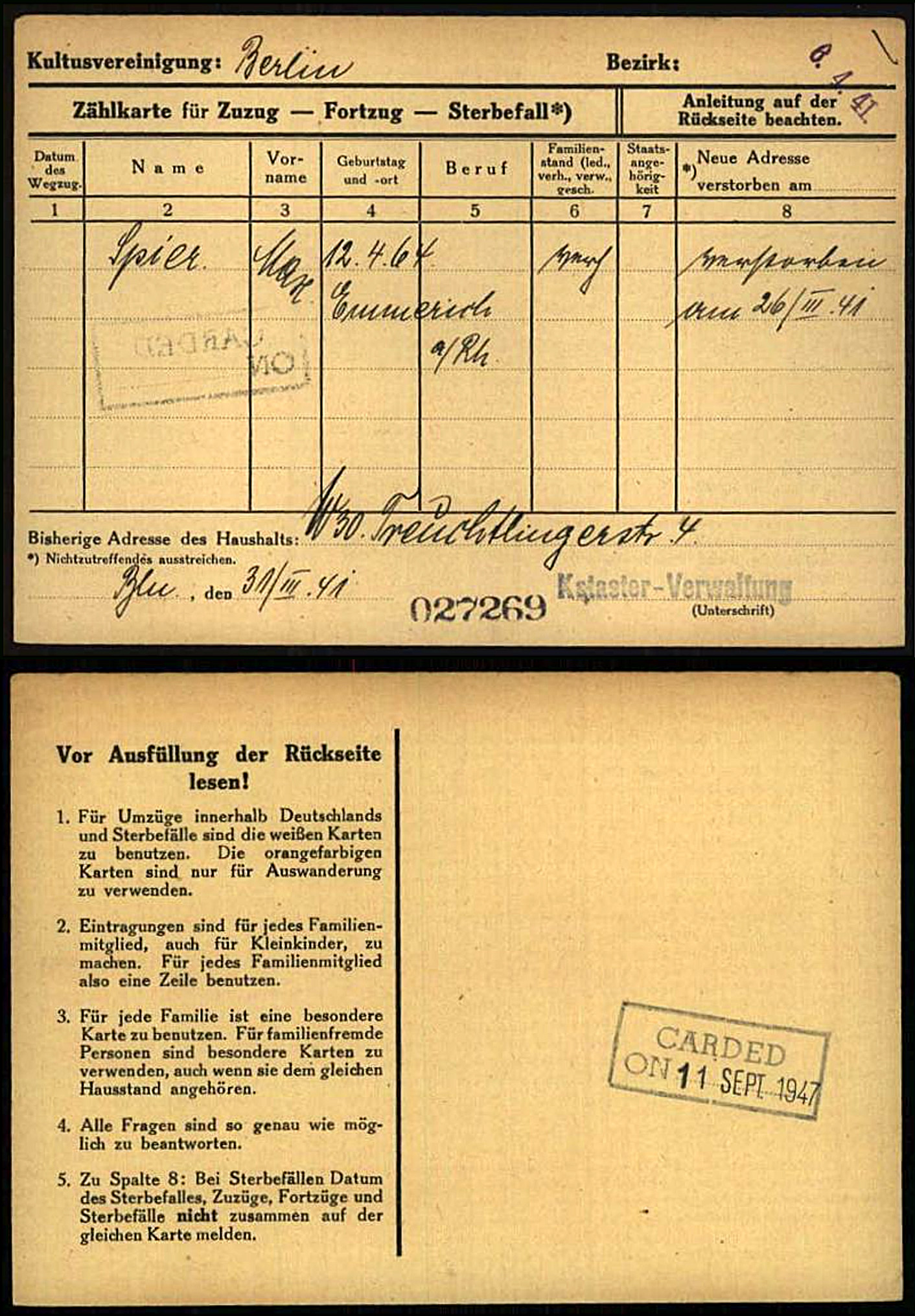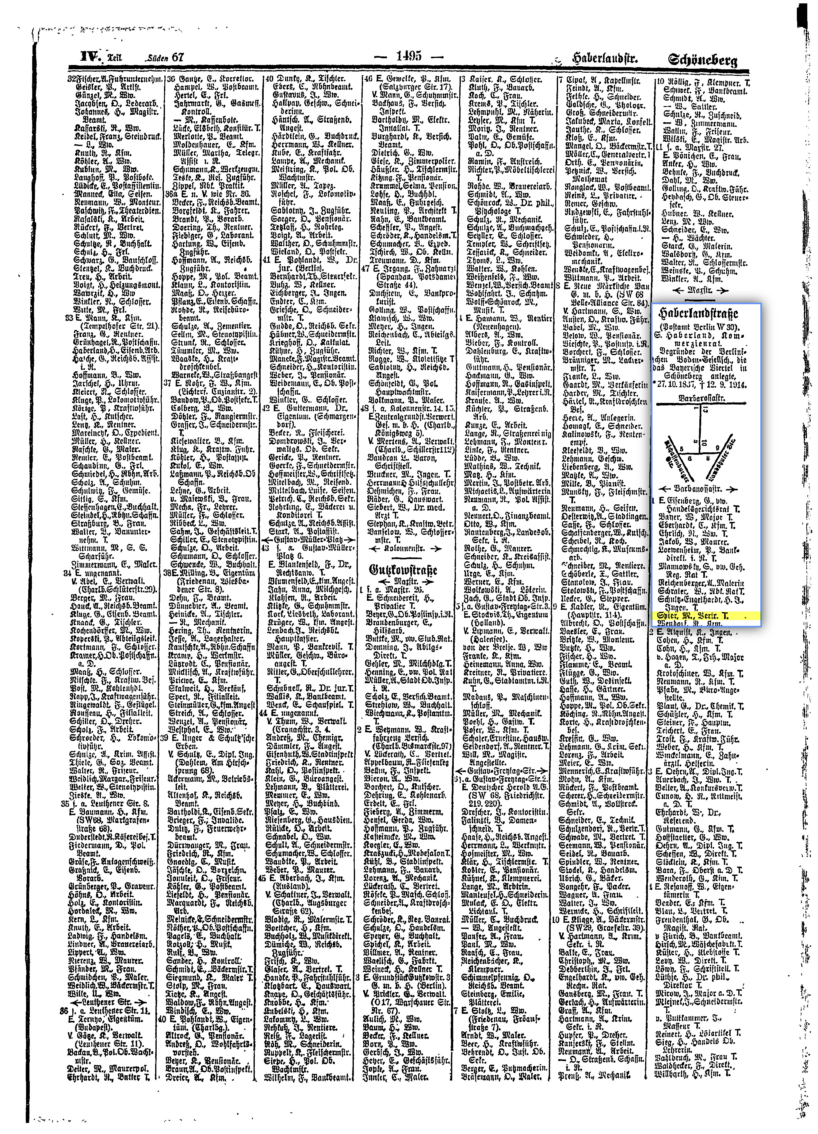 - In der Treuchtlinger Straße wohnten sie im Erdgeschoss. Der Vater von Hans hieß Max Spier (12.04.1864-26.03.1941) und war bereits 1936 Mieter der Wohnung.