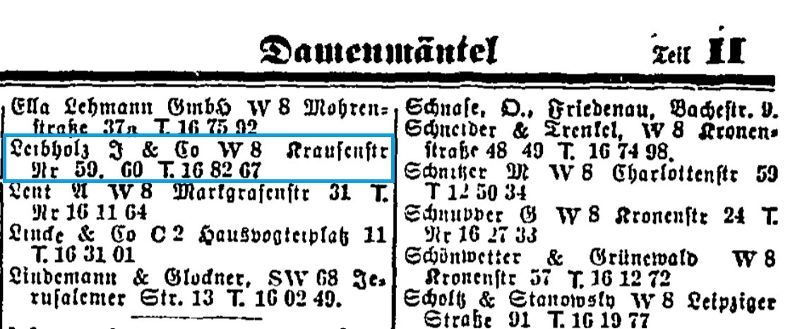 Zu dieser Zeit plante die Familie bereits ihre Auswanderung nach Johannesburg in Südafrika, wo Augustes erster Sohn Kurt wohnte. Das Geschäft, dessen Eintrag sich noch bis 1939 im Berliner Adressbuch finden lässt, hatten sie, so schreibt sie, schon 1937 oder 1938 aufgeben müssen.